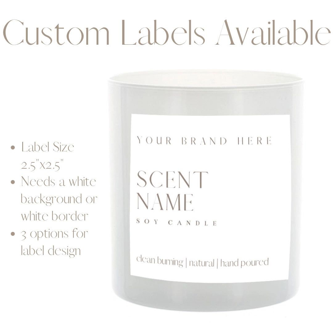 We also offer three options for label design Options for label design Option 1 We print a label design you provide. Label size varies with a vessel Please email your design to sales@riverbirchcandles.com Option 2 We customize one of our label designs with your brand name, fonts, and colors. Option 3 We fully design label $100 one time design fee will apply