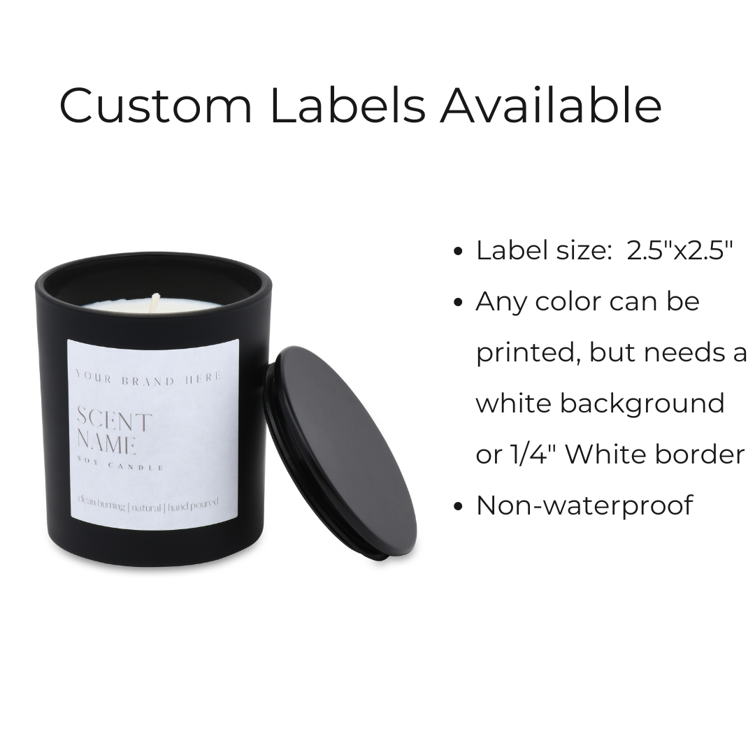 We can print it for you and apply custom labels to make it quick and simple. We use a label that is 2.5"x2.5" with a white border or white background for these candles