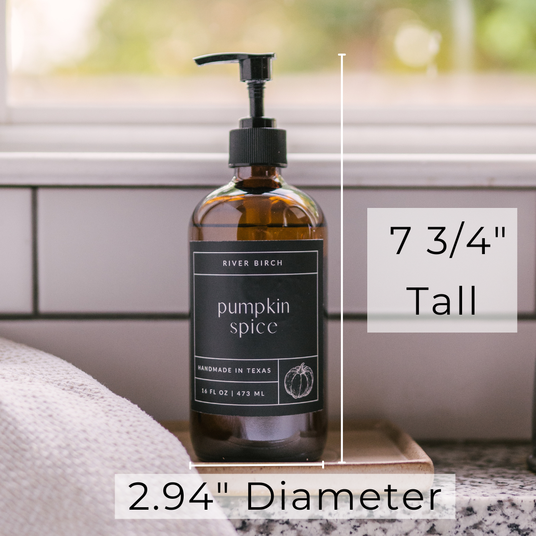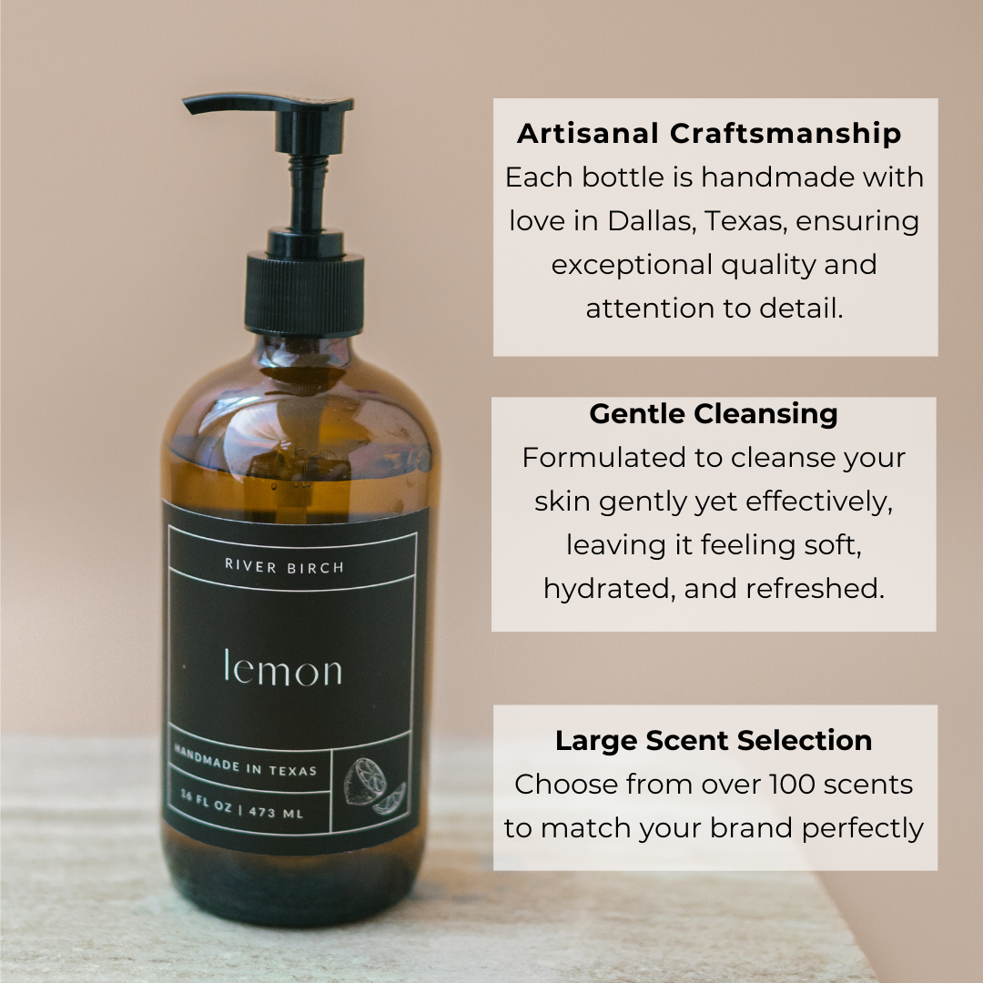 Our 16 oz Amber Glass Hand Soap is available in over 100 scents to choose from.
