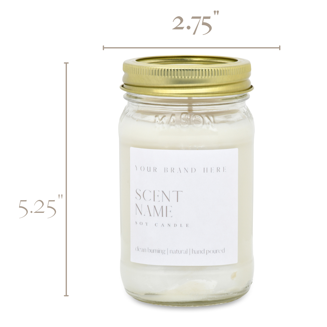 16oz Mason Jar Soy Candle - Pint - (Unlabeled or Custom Label)
