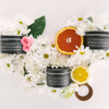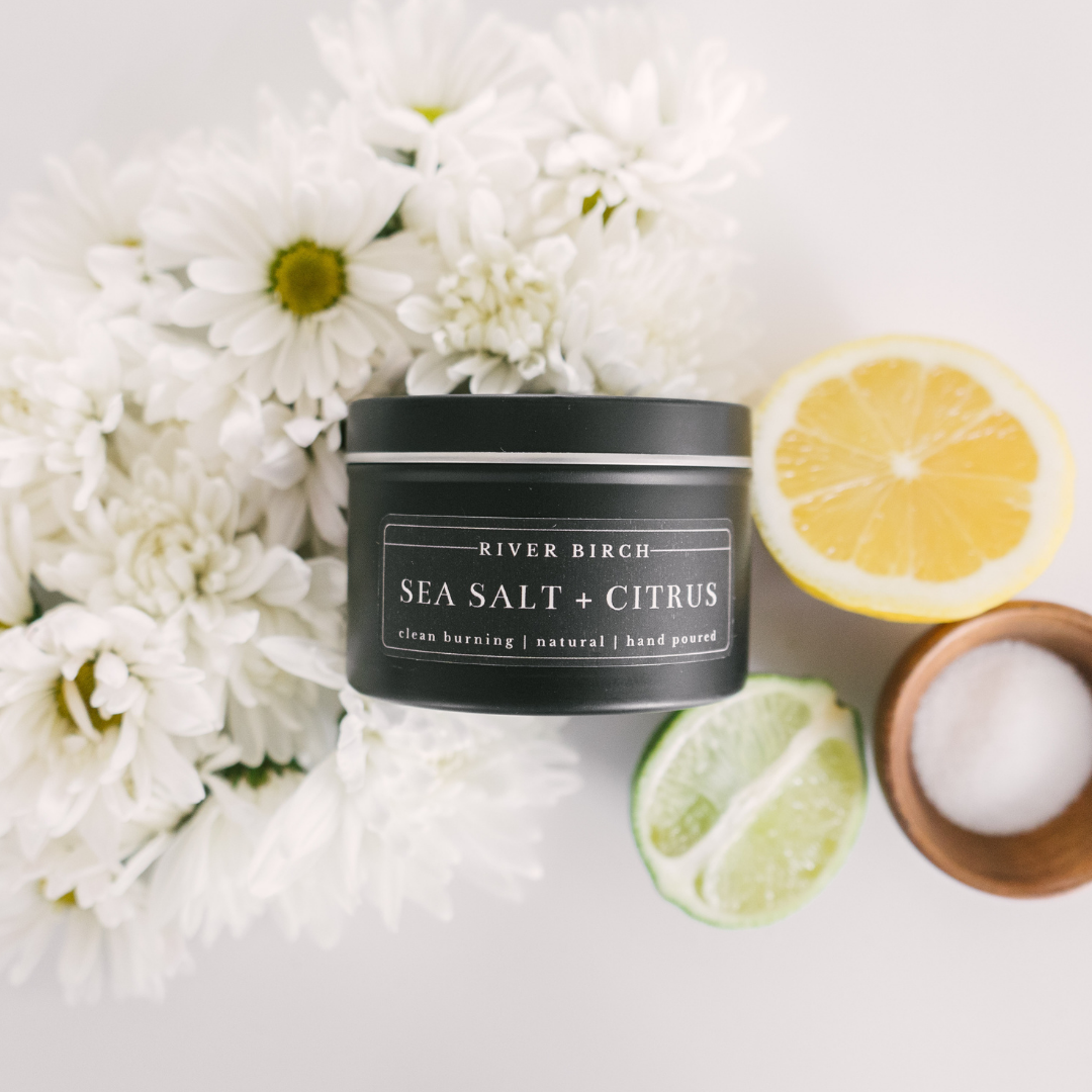 Sea Salt + Citrus: Our Sea Salt + Citrus evokes the churn of the sea, wrapping the water, sand, and salt together into a clean and ozonic scent. Top notes of lemon, orange, and fresh ozone give way to a heart of briny sea salt and a hint of jasmine. Light musk balances the woody violet and cedar in the base.