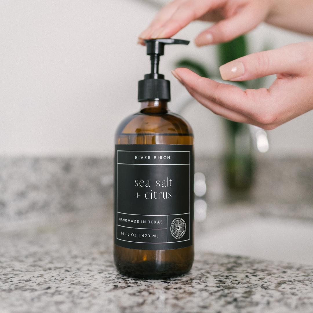 Sea Salt + Citrus - 16 oz Amber Soap - Handmade - Hand Wash