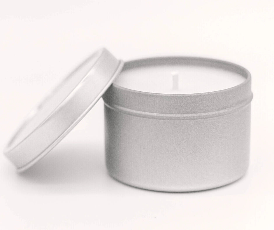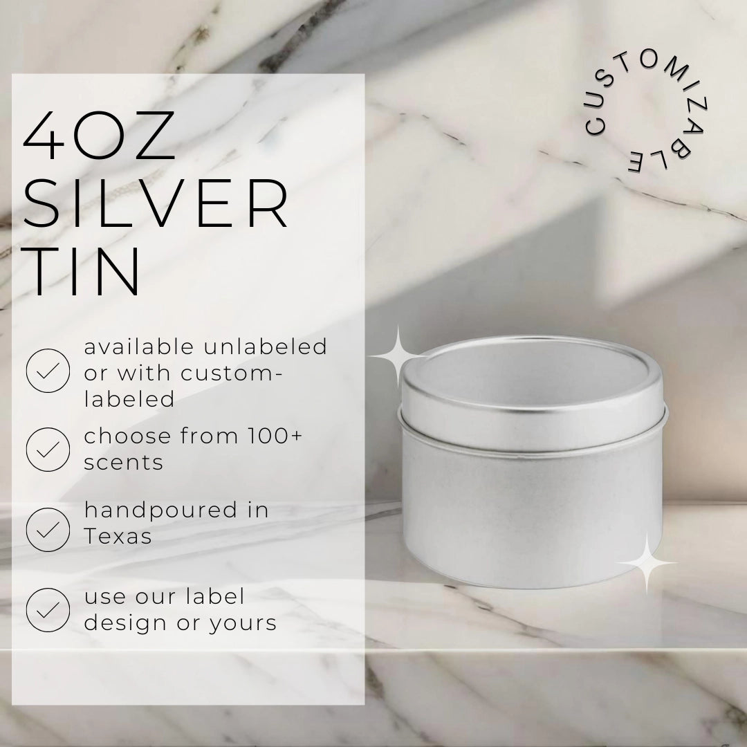 4oz Silver Tin Soy Candle (Unlabeled or Custom Label)