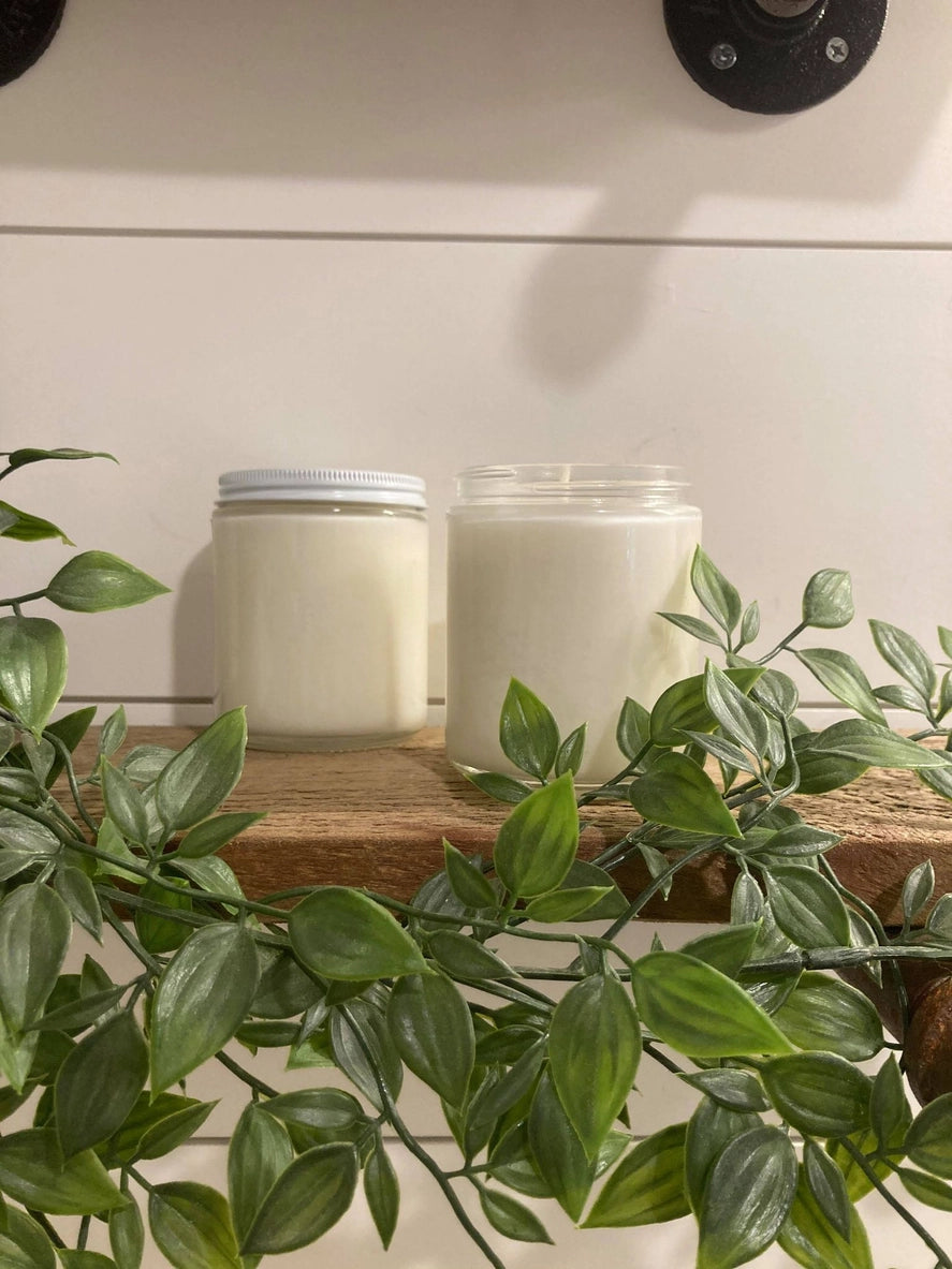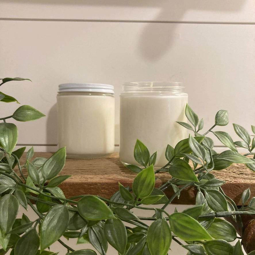 Our 8.5oz Jar Candles are available in Clear and Amber, with over 100 scents to choose from.