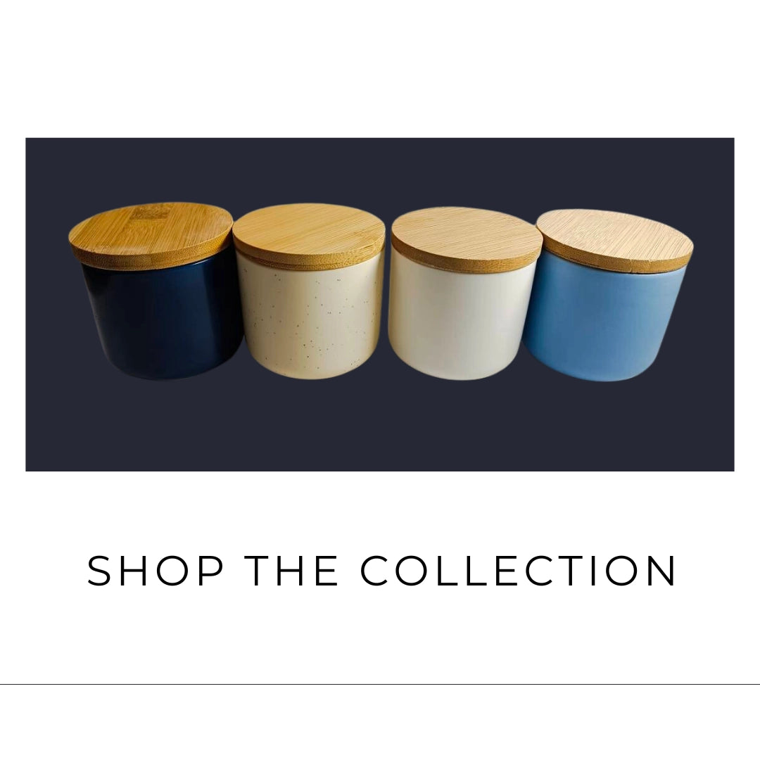 Our 8 oz Ceramic Candles are available in Cream, Navy, Sky Blue, White, and Gray, with over 100 scents to choose from.