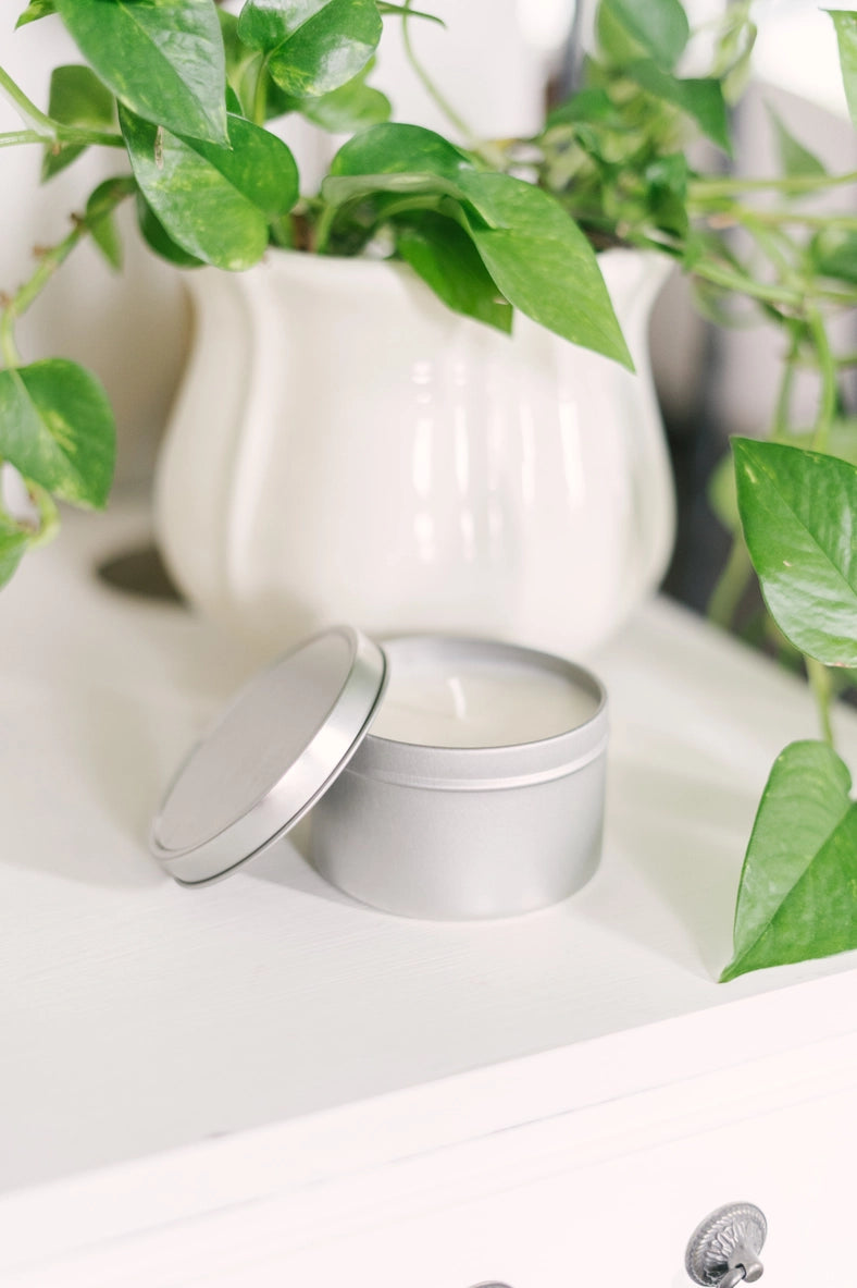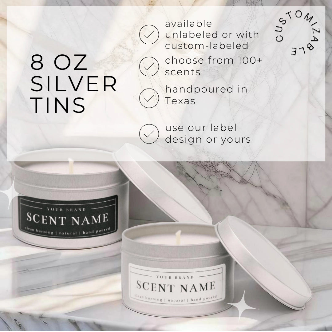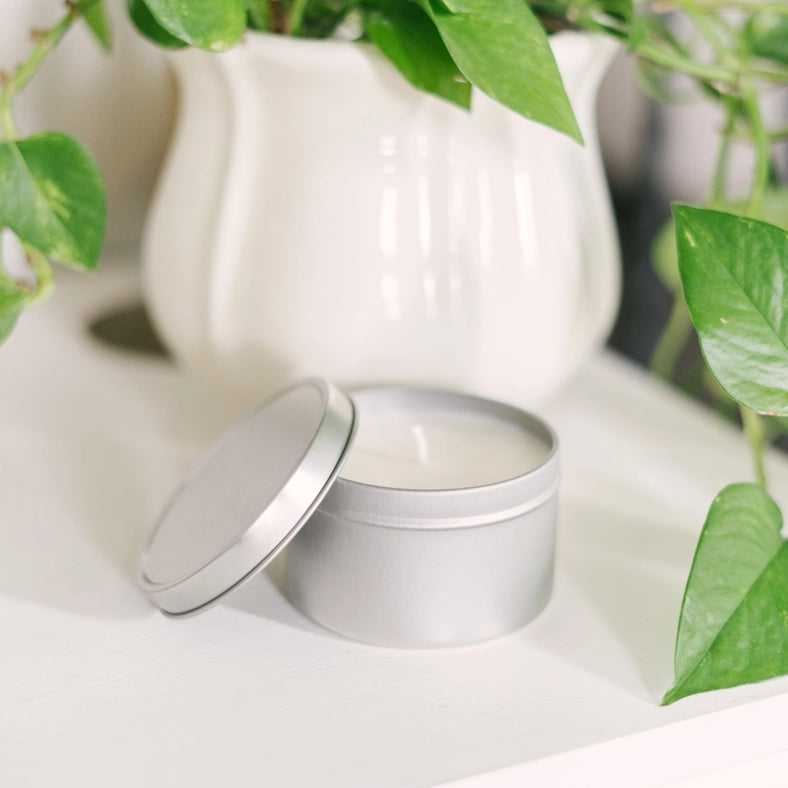 8oz Silver Tin Soy Candle (Unlabeled or Custom Label)