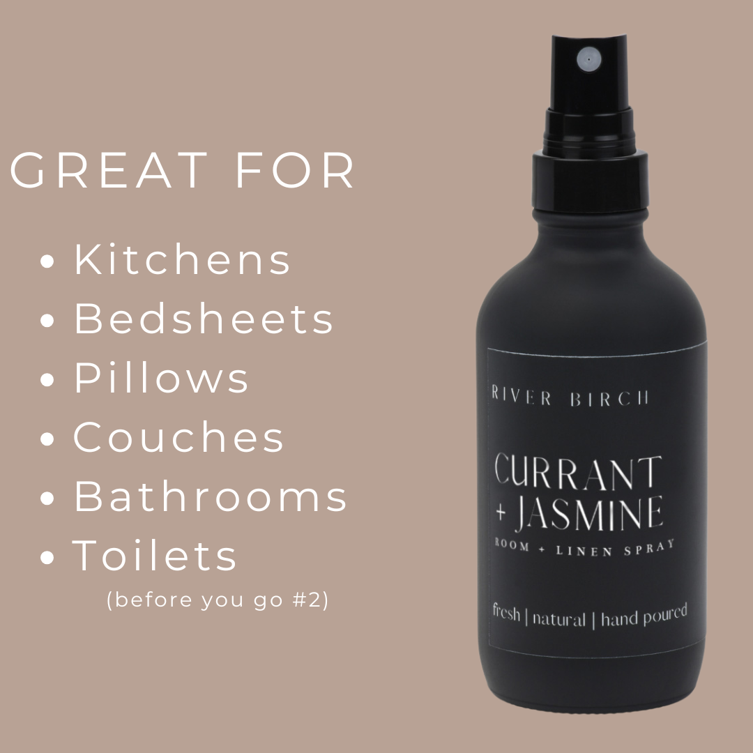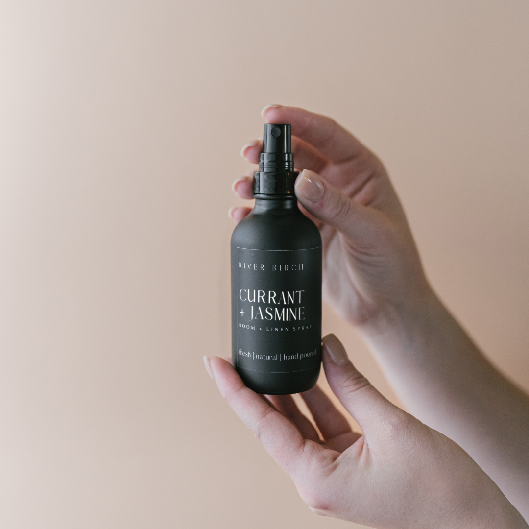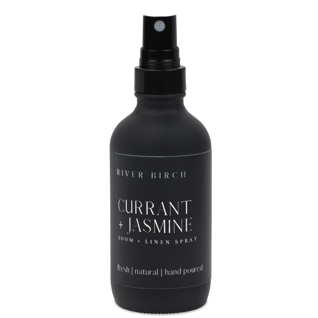 Currant + Jasmine - 4 oz Black Glass Room + Linen Spray