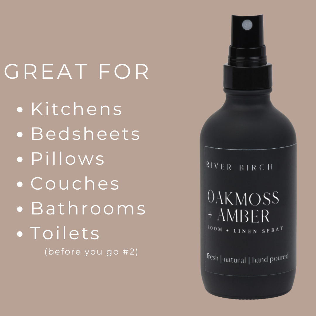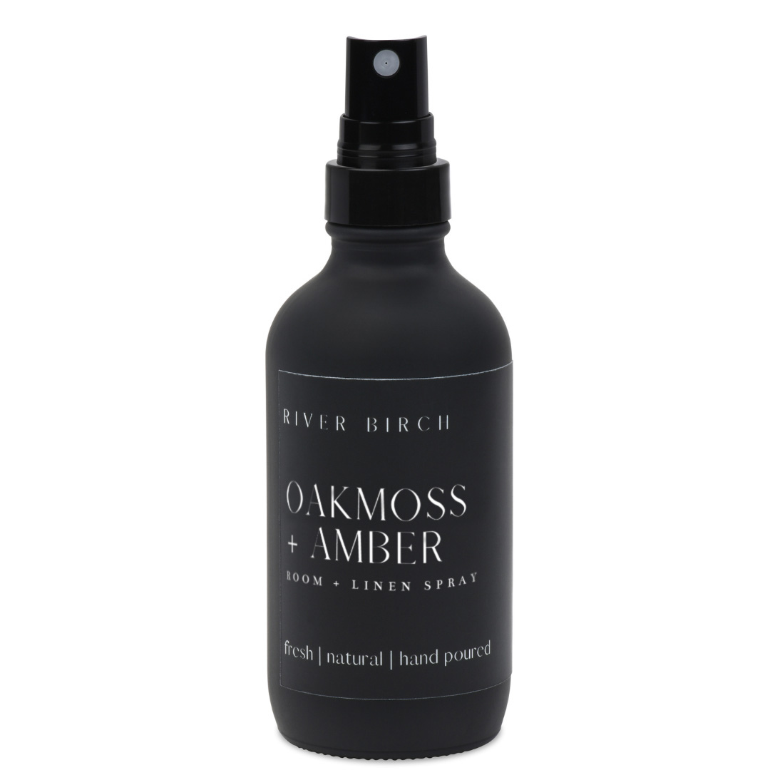 Oakmoss + Amber - 4 oz Black Glass Room + Linen Spray