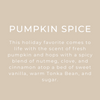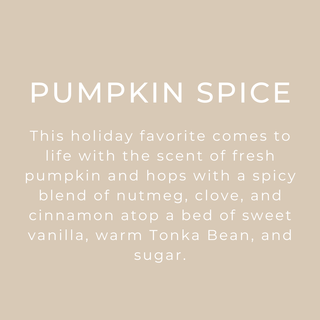 This holiday favorite comes to life with the scent of fresh pumpkin and hops with a spicy blend of nutmeg, clove, and cinnamon atop a bed of sweet vanilla, warm Tonka Bean, and sugar.