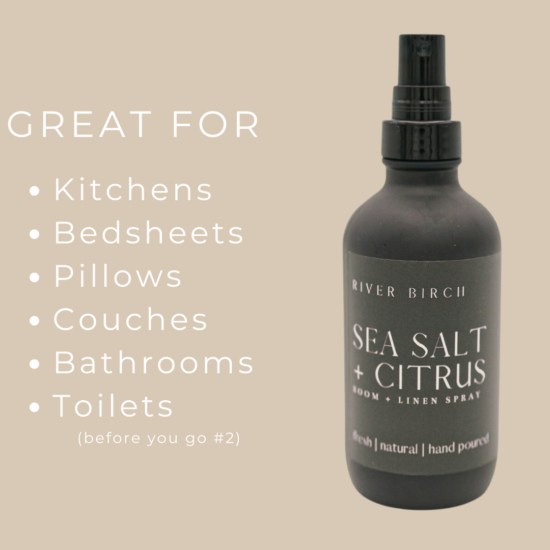 Sea Salt + Citrus - 4 oz Black Glass Room + Linen Spray