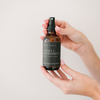 Packaged in amber glass bottles with black labels and black spray nozzles.