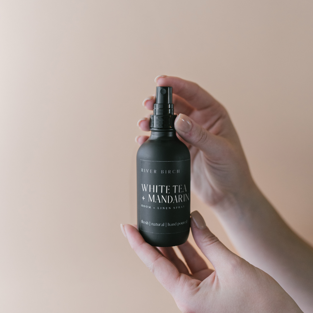 White Tea + Mandarin - 4 oz Black Glass Room + Linen Spray