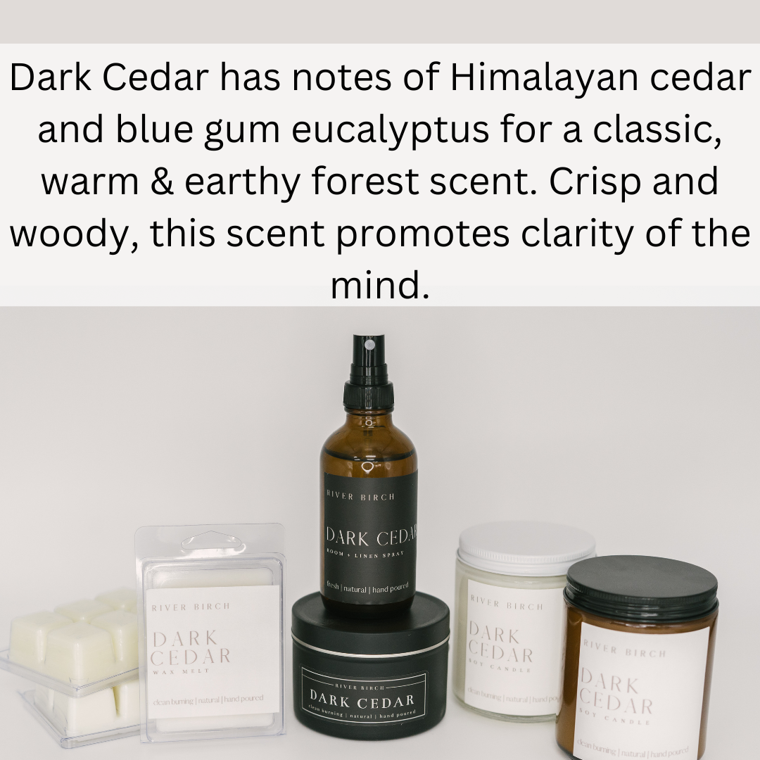 Himalayan cedar and blue gum eucalyptus for a classic, warm & earthy forest scent. Crisp and woody, this scent promotes clarity of the mind.