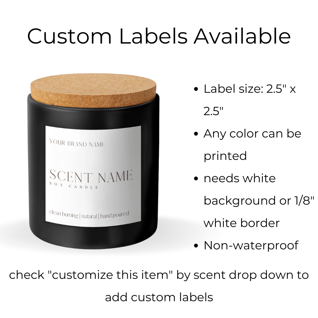 We also offer three options for label design Options for label design Option 1 We print a label design you provide. Label size varies with a vessel Please email your design to sales@riverbirchcandles.com Option 2 We customize one of our label designs with your brand name, fonts, and colors. Option 3 We fully design label $100 one time design fee will apply