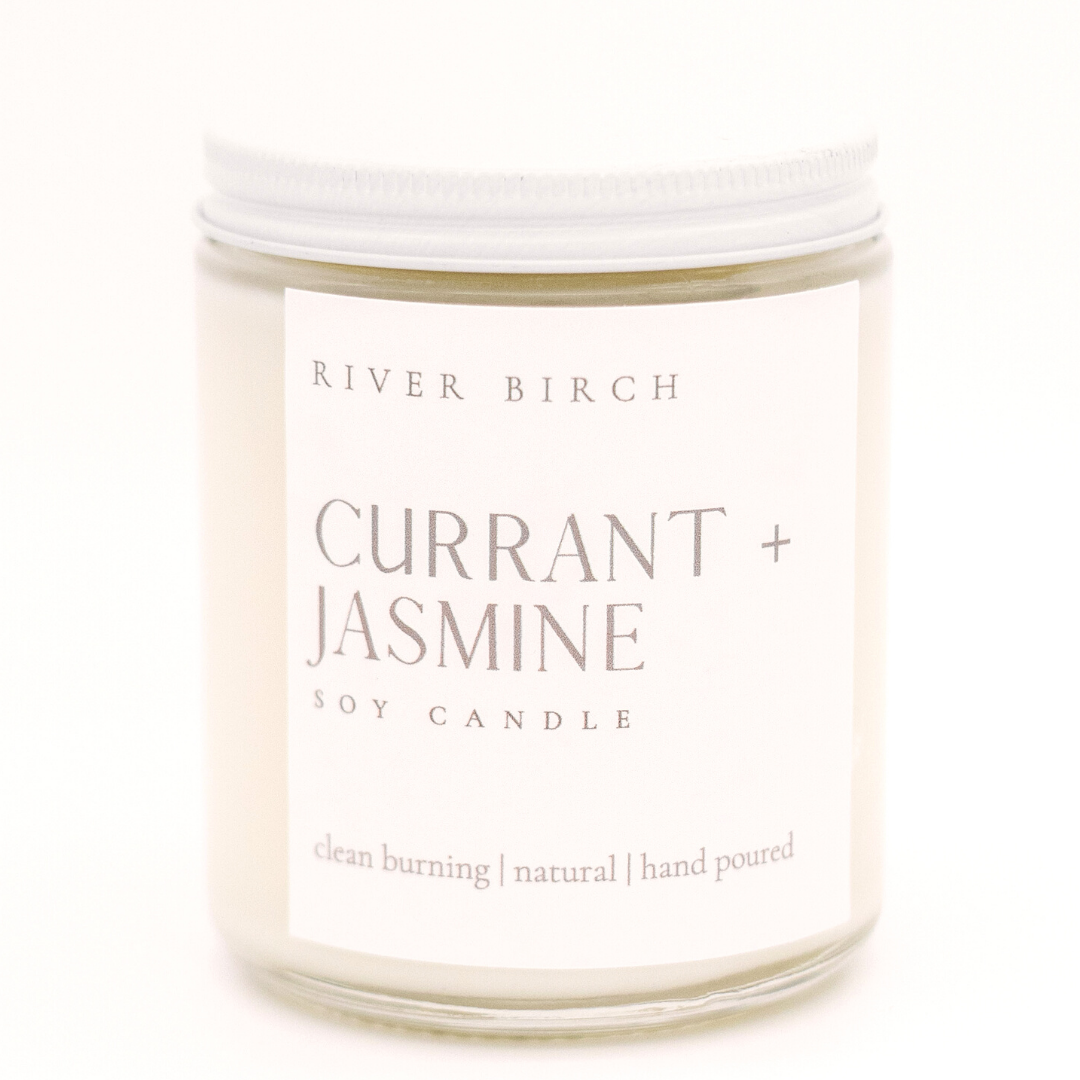 Our Currant + Jasmine candle is an elegant blend of jasmine and dark fruits smoothed out by an amber and tonka base. This luxurious scent starts with hints of citrus and peach that open up to a heart of red and black currants. Jasmine blossoms envelop the fruit notes with a dreamy, romantic floral aroma. The rich aromas of tonka, vanilla and amber are bolstered by hints of anise and black tea to round out this graceful & cozy fragrance.