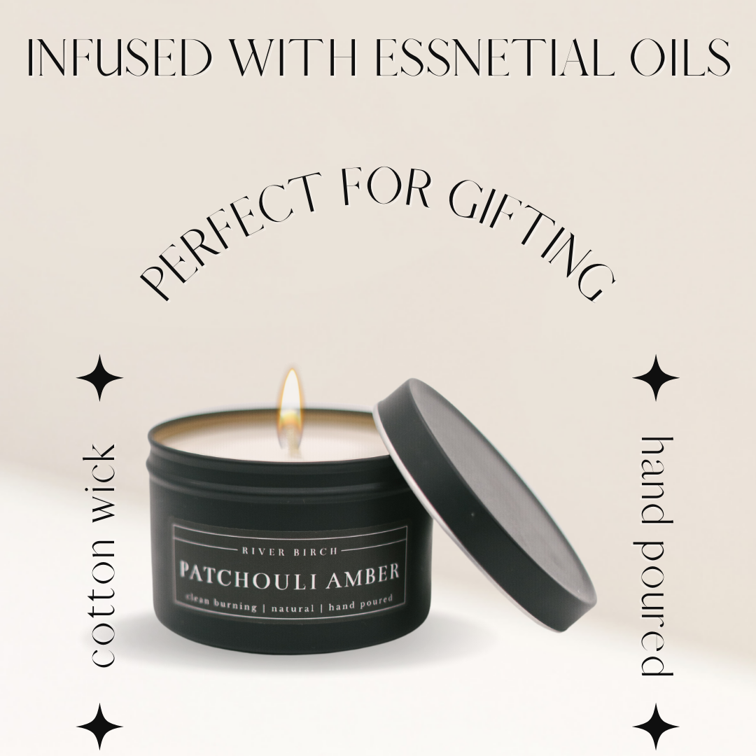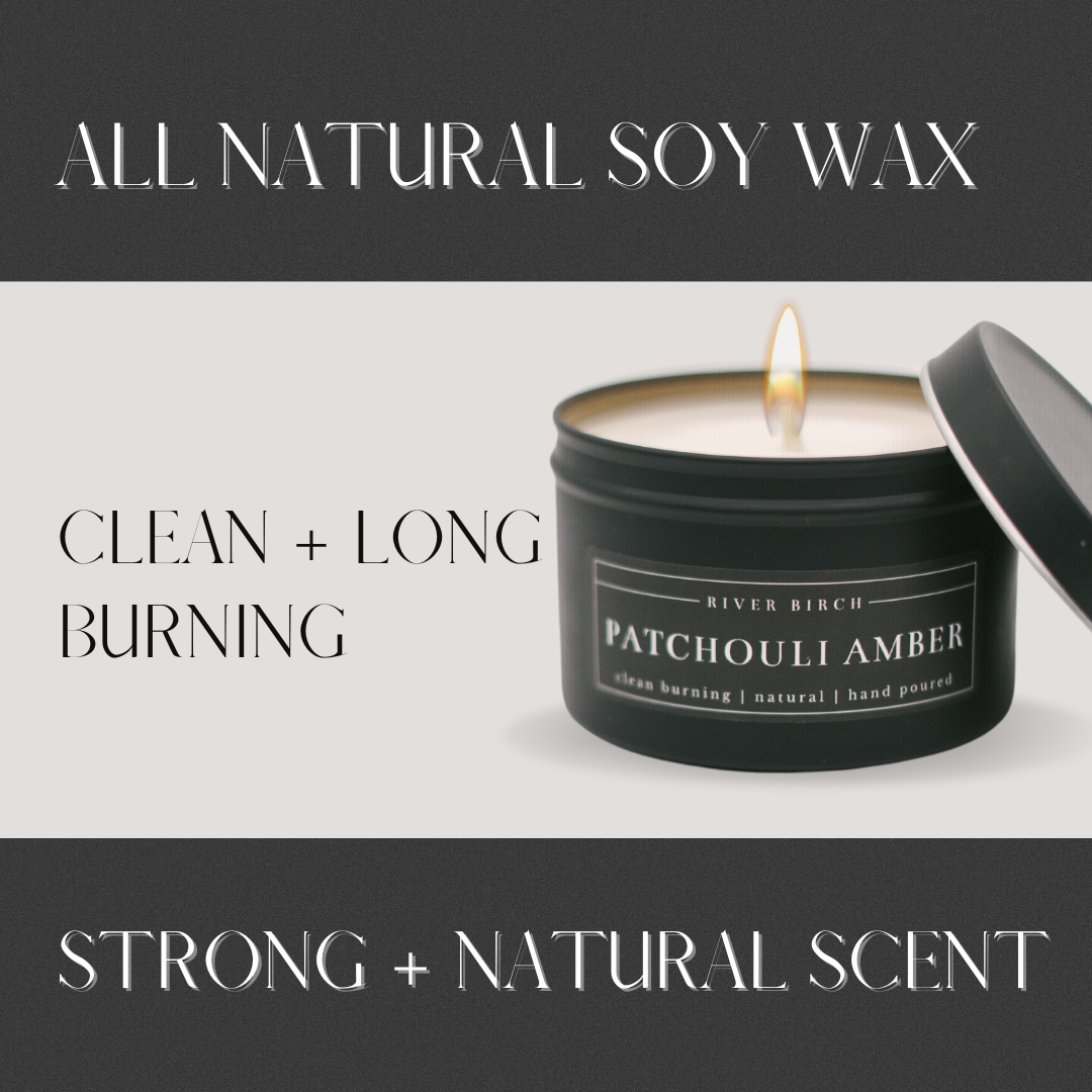 Our Patchouli Amber candle is an earthy blend of light citrus followed by warm clove and exotic florals on a delicate bed of silky musk and patchouli.